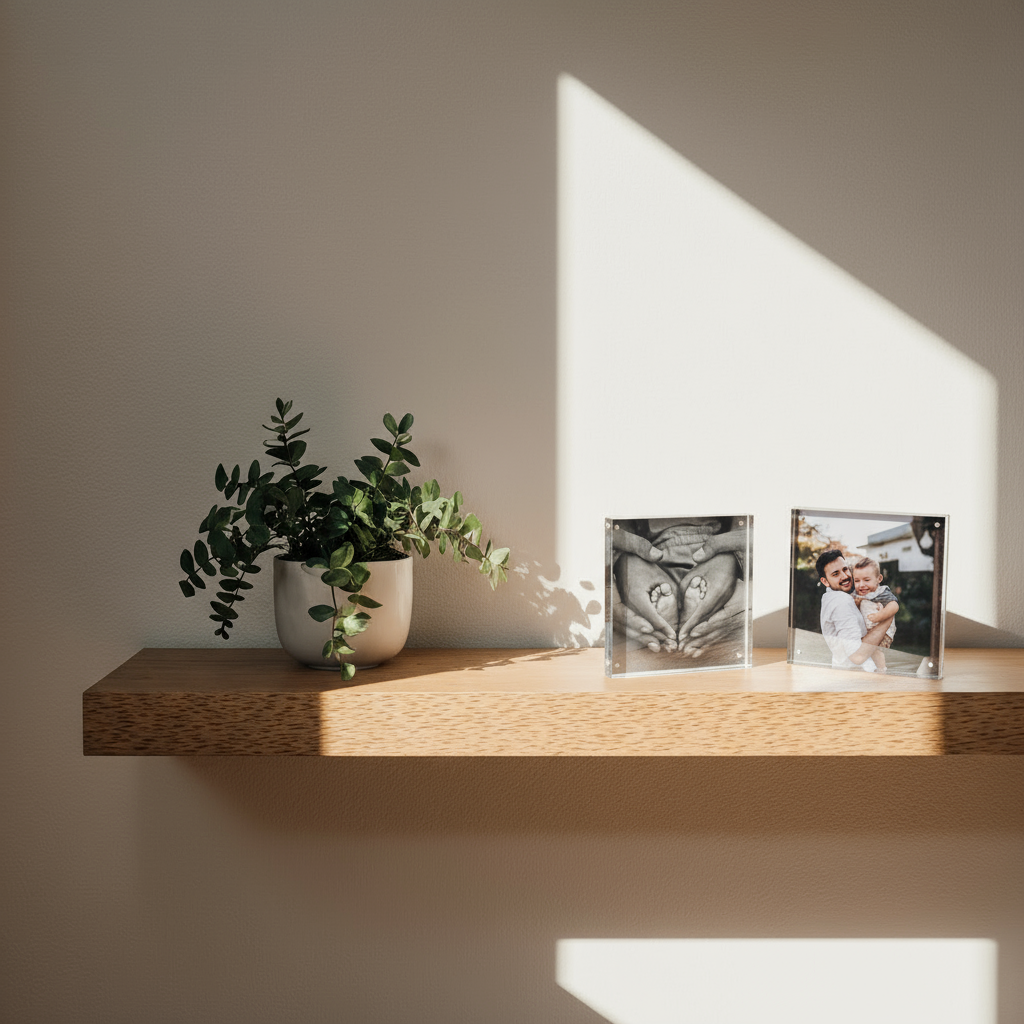 לא, מוצר זה אינו מיועד לתלייה. הבלוק האקרילי העבה תוכנן במיוחד לעמוד באופן עצמאי על משטחים ישרים, מה שהופך אותו לאידיאלי להצבה על שולחנות, מדפים, שידות ומזנונים.